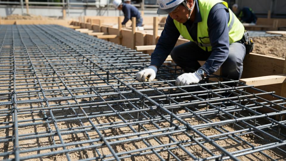 基礎工事の中でも、建物の性能を左右する重要な工程が「鉄筋配筋」。