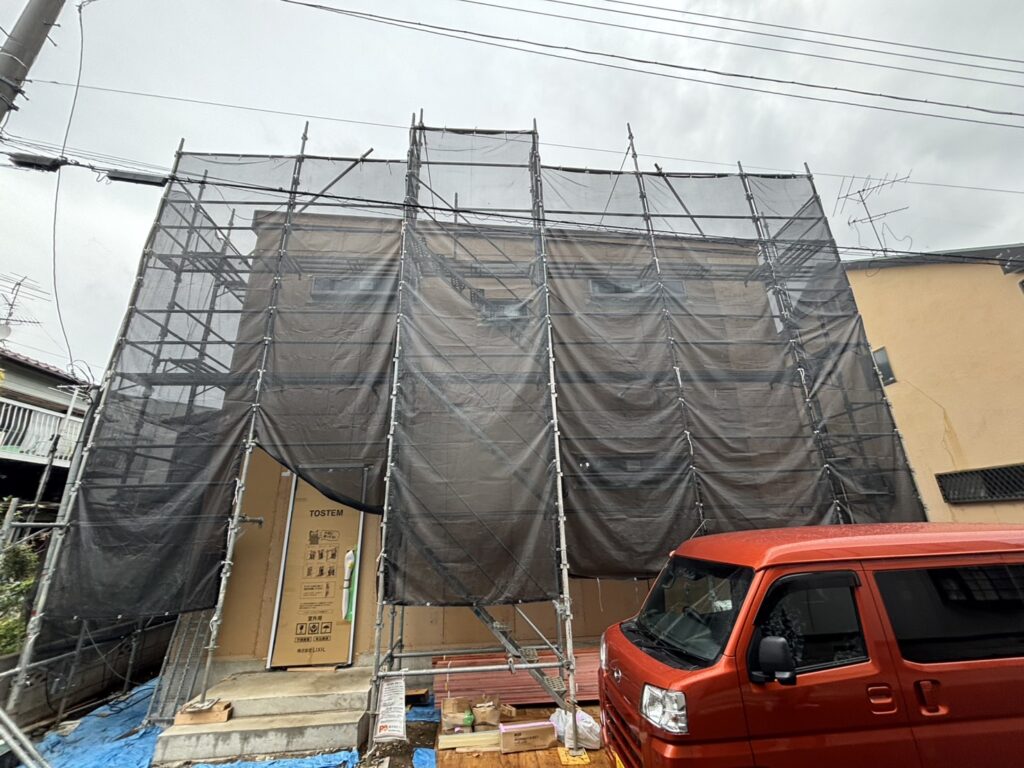 今日は施工中の現場を見させていただきました。 内部は、サッシの取付けと断熱材の施工がすべて完了し、建物全体がしっかりと覆われた状態になっています。配管や…