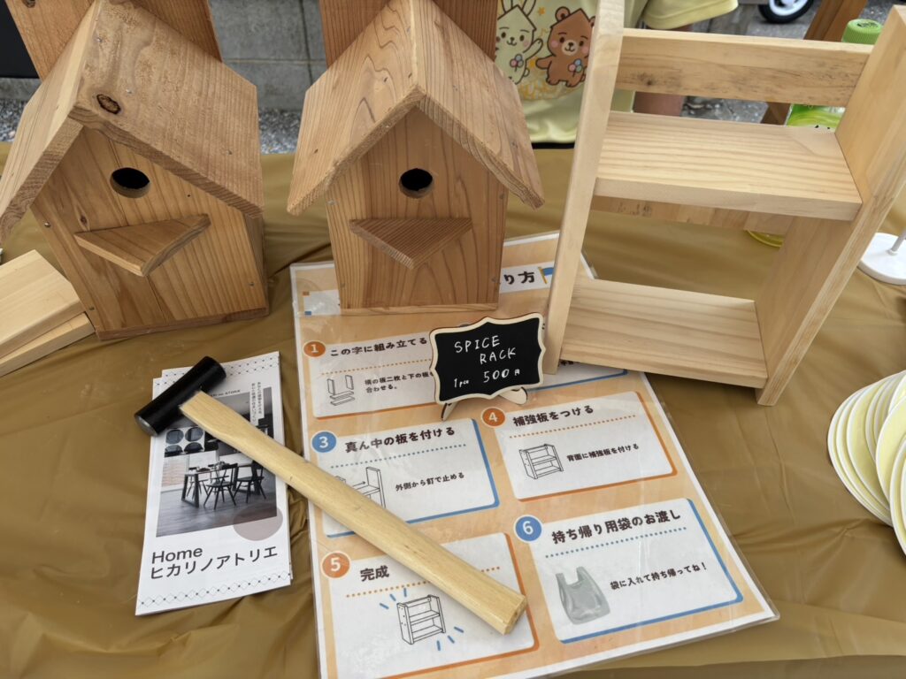 スパイスラックづくりでは、お子さまが金づちを持って真剣に取り組む姿や、完成した作品を大事そうに持ち帰る姿が印象的でした。