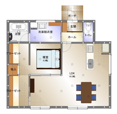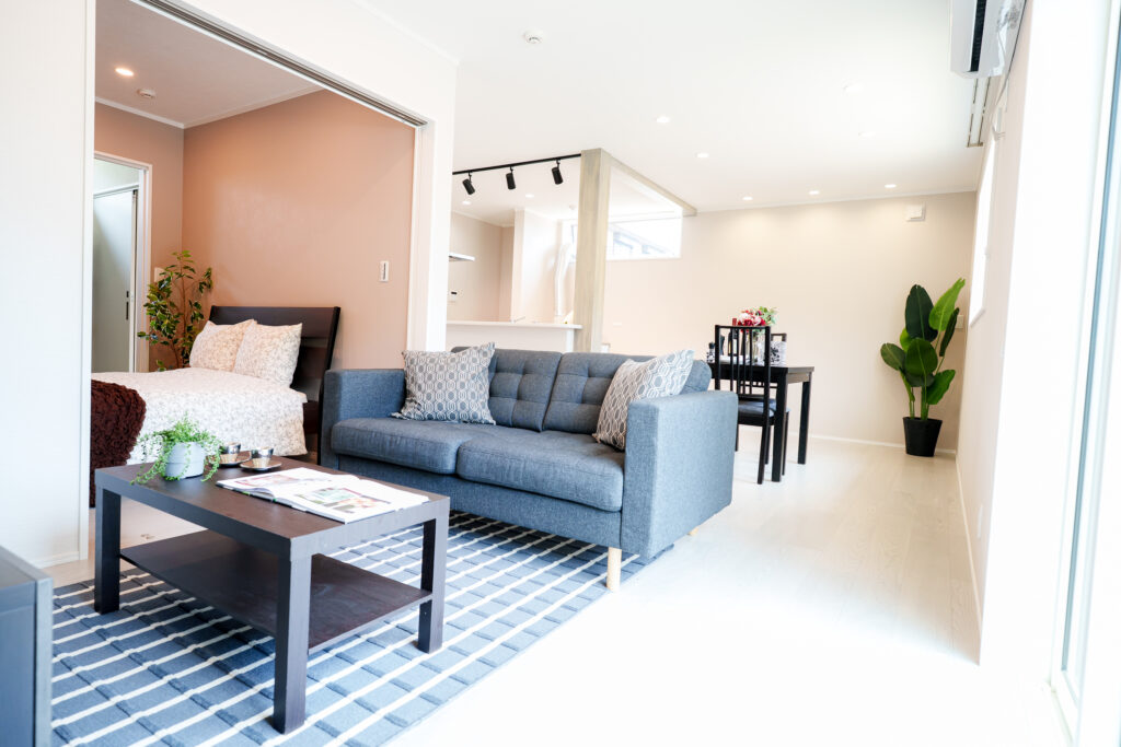 限られた面積の中でも「広がり」を感じられるよう、回遊できる生活動線と、透け感のある建具を随所に配置。玄関からリビングへと視線が抜け、実面積以上の開放感を演出しています。